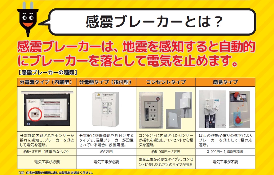 一般的なブレーカーには、揺れによって電気を遮断する機能はありません。
