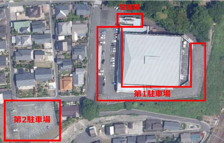 ・直方市体育館第一駐車場または第二駐車場をご利用ください。(地図は下記添付ファイルをご確認ください。)